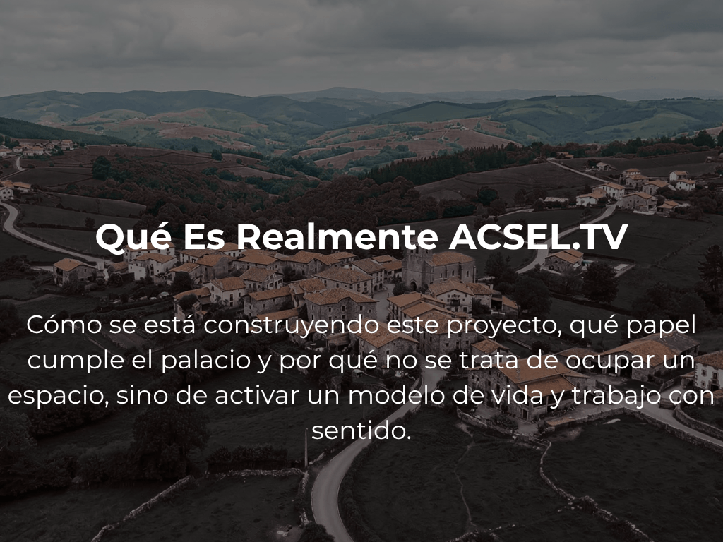 ACSEL.TV no es un concepto. Es un proyecto en construcción. Se está desarrollando un hub creativo rural en Asturias: un espacio donde personas con experiencia producen contenido, desarrollan proyectos y trabajan en comunidad desde un entorno que también forma parte del proceso. Es un modelo de trabajo y vida integrado en un mismo lugar, que se está construyendo y documentando en tiempo real.